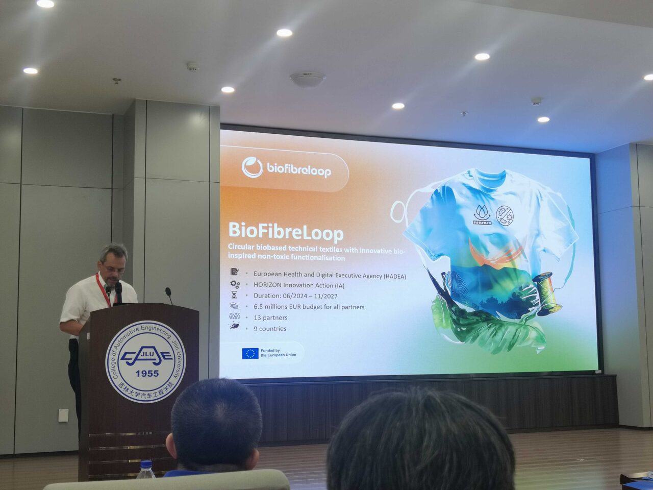 A fitting surrounding for „spreading“ the word of BioFibreLoop: Thomas Stegmaier who is also president of the International Society of Bionic Engineering which organised this event gave an overview of BioFibreLoop in his talk. In the discussion following his talk, the difficulties of producing textiles with oil repellent properties without using #PFAS chemicals (fluor polymers) came up. A world wide issue which BioFibreLoop will hopefully contribute to solve.